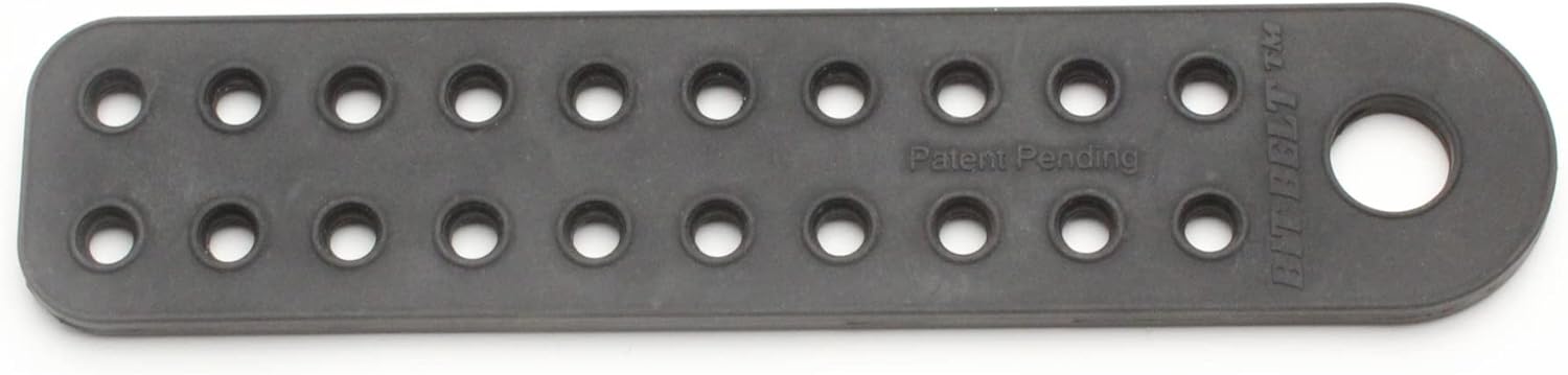 Store and organize your 1/4-inch hex bits with the Bit Belt. The Bit belt is a rubber bit holder that grasps the annular groove of 1/4-inch hex bits. The Bit Belt has 20 holes for storing 1/4-inch hex bits, and a single, larger hole for hanging or whatever. The Bit Belt is not magnetic.