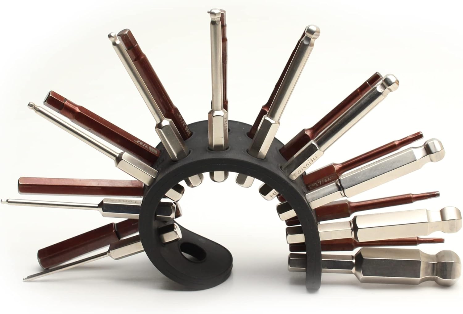 The 20 storage holes are specially designed to fit the standard annular groove found on 1/4-inch hex bits.